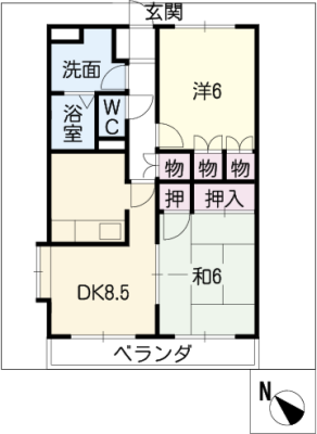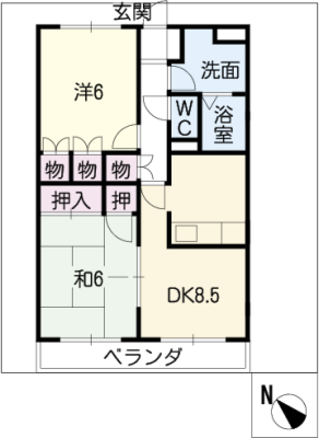 保証金1.00ヶ月 / 償 却5割間取り 2DK / 44.82入居日 即 可