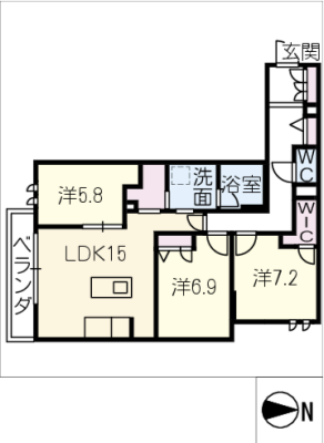 保証金1ヶ月 / 償 却10割間取り 3LDK / 68.04入居日 即 可