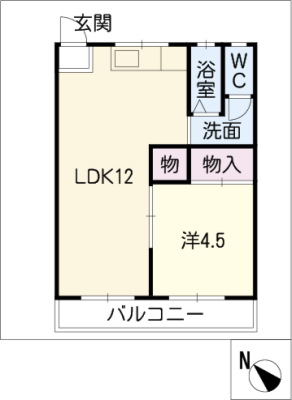 敷 金1ヶ月 / 礼 金1ヶ月間取り 1K / 26.56入居日 2026年3月中旬