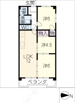 敷 金2.00ヶ月 / 償 却2.00ヶ月間取り 3LDK / 66.01入居日 相 談