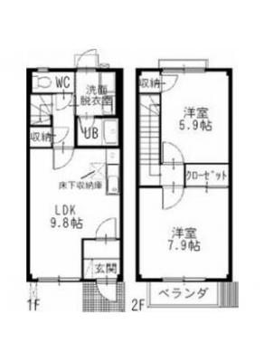 保証金46,000 / 償 却10割間取り 2LDK / 59.62㎡入居日 即 可