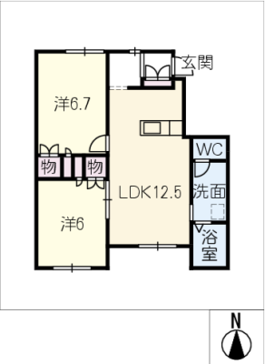 敷 金6万 / 礼 金-----間取り 2LDK / 52.99入居日 即 可