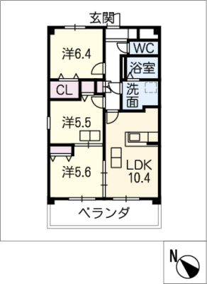 敷 金2ヶ月 / 礼 金1ヶ月間取り 3LDK / 68.25㎡入居日 即 可