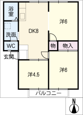 敷 金46,200 / 礼 金-----間取り 2K / 44.62㎡入居日 即 可