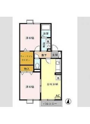 保証金1.00ヶ月 / 償 却10割間取り 2DK / 43.69入居日 即 可