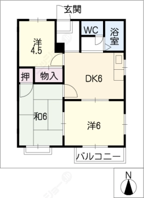 敷 金1ヶ月 / 償 却10割間取り 3DK / 46.37入居日 即 可