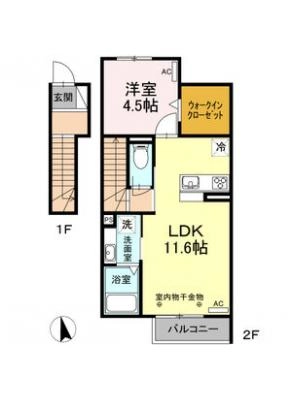 保証金1ヶ月 / 償 却10割間取り 2DK / 45.36入居日 即 可