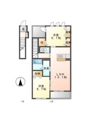 保証金----- / 礼 金1.00ヶ月間取り 2LDK / 55.42入居日 即 可
