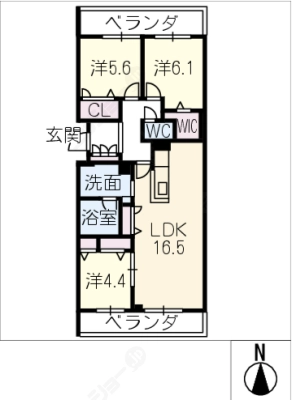 敷 金2ヶ月 / 礼 金2ヶ月間取り 3LDK / 88.14㎡入居日 即 可