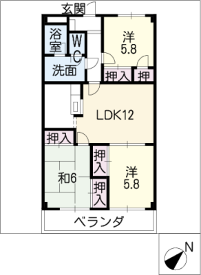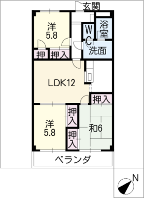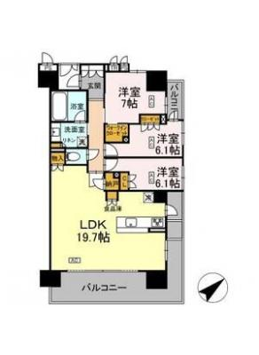 敷 金5万 / 礼 金1.5ヶ月間取り 3LDK / 67.96㎡入居日 相 談