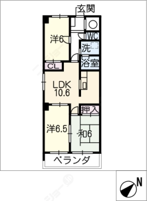 敷 金2.00ヶ月 / 償 却2.00ヶ月間取り 3LDK / 66.01入居日 相 談