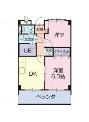 保証金60,000 / 償 却10割間取り 2DK / 39.38入居日 即 可