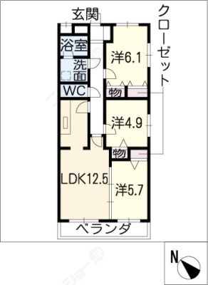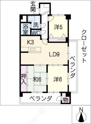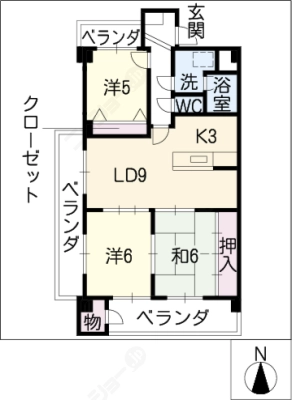 敷 金5万 / 礼 金1.5ヶ月間取り 3LDK / 67.96入居日 相 談