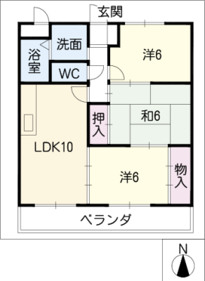 敷 金1万 / 一時金10万間取り 3 LDK / 61.96㎡入居日 即 可