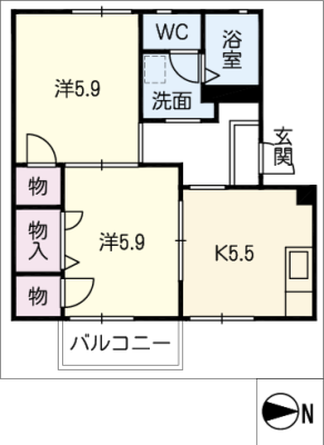 保証金----- / 礼 金1万間取り 2K / 43.54㎡入居日 即 可