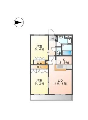 保証金46,000 / 償 却10割間取り 2LDK / 59.62入居日 即 可