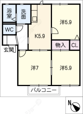 保証金1.00ヶ月 / 償 却10割間取り 2LDK / 59.62入居日 相 談