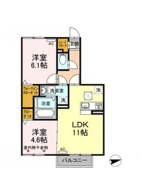 敷 金1ヶ月 / 礼 金1ヶ月間取り 2LDK / 58.32㎡入居日 即 可