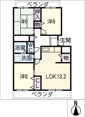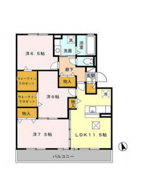 敷 金3.00ヶ月 / 礼 金2.00ヶ月間取り 3LDK / 76.39㎡入居日 相 談