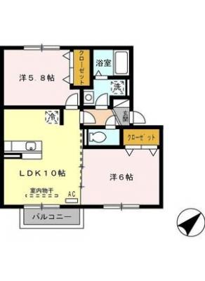 敷 金1ヶ月 / 礼 金-----間取り 2DK / 55.51㎡入居日 即 可
