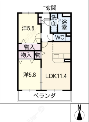 保証金----- / 礼 金1.00ヶ月間取り 2LDK / 57.26入居日 即 可