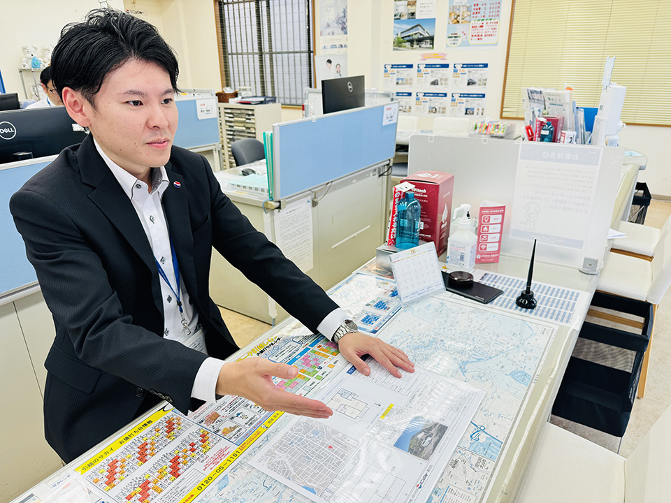 日本列島のほぼ中心に位置する関市。歴史と伝統を持つ刃物のまちとして知られています。東海北陸自動車道と東海環状自動車道の結束する美濃関JCTを有する物流拠点都市としても、今後期待が持てるエリアです。その関市に隣接する、美濃市・美濃加茂市西部・岐阜市芥見を含めた担当エリアは、自然に恵まれながらも、各種商業施設も揃い、生活しやすい癒しの街と言えます。スローライフを夢見る方、是非とも当支店を一度のぞいてみてください!
