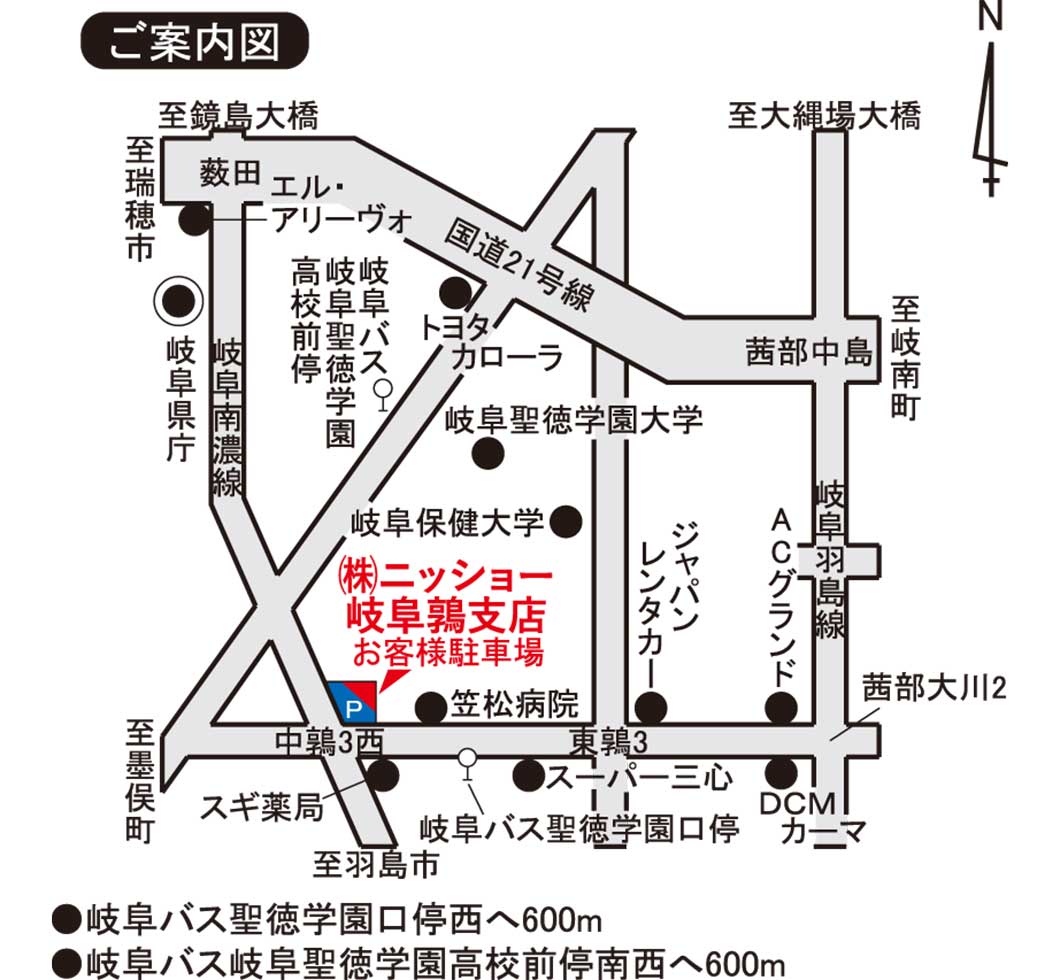 | アクセス | 岐阜バス聖徳学園口停西へ600m、岐阜バス岐阜聖徳学園高校前停南西へ600m |