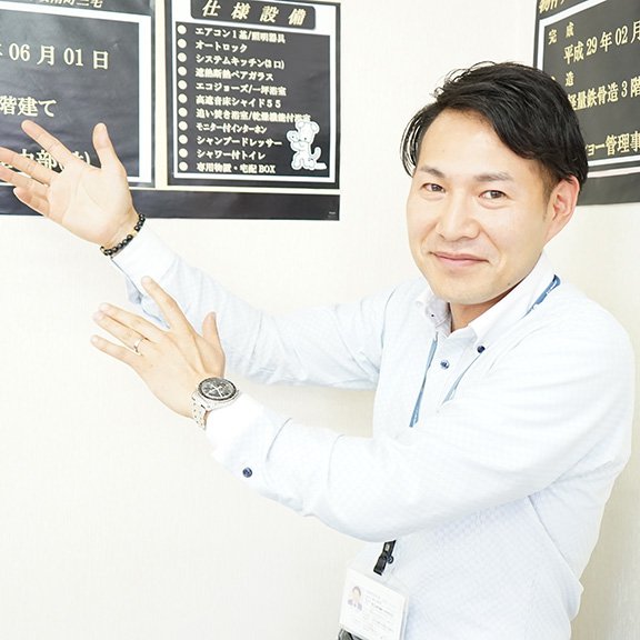 お部屋探し、保証・管理、賃貸住宅建設のコンサル、相続の問題解決等、この仕事をしていると様々な人々と出会います。期待に応え、お客様の笑顔が見られた時が、最高に「たのしー」と想える瞬間です!