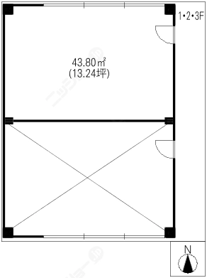 階数3階建/2階 面積43.80㎡(約13.24坪) 築年数築34年