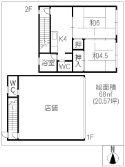 階数2階建/1階 面積68.00㎡(約20.57坪) 築年数築46年