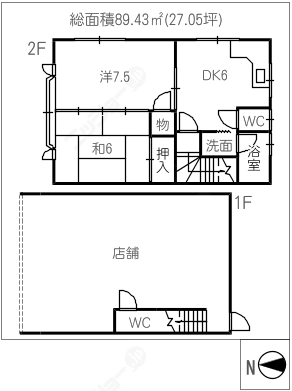階数2階建/1階 面積90.45㎡(約27.36坪) 築年数築39年