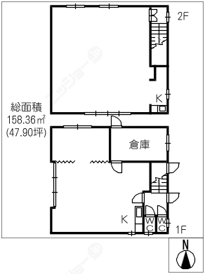 階数2階建/1階 面積158.36㎡(約47.90坪) 築年数築43年