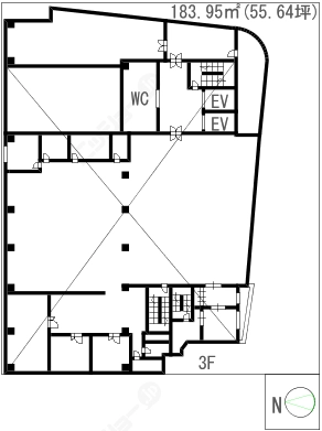 階数10階建/3階 面積183.95㎡(約55.64坪) 築年数築33年