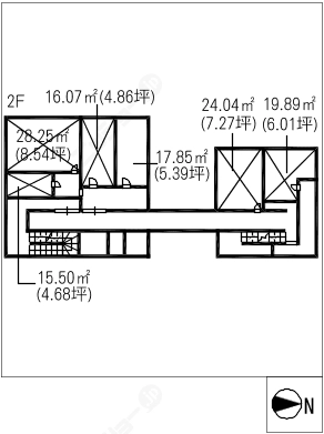 階数3階建/2階 面積17.85㎡(約5.39坪) 築年数築25年