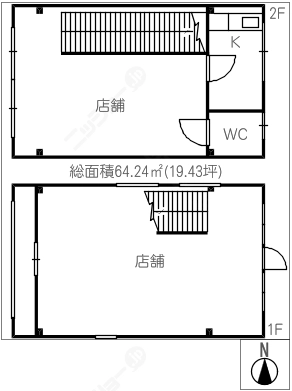 階数2階建/1階 面積64.24㎡(約19.43坪) 築年数築33年