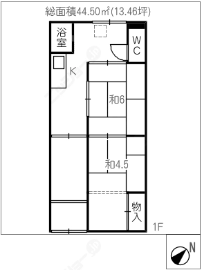 階数1階建/1階 面積44.50㎡(約13.46坪) 築年数築59年