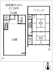 階数2階建/2階 面積70.38㎡(約21.29坪) 築年数築46年