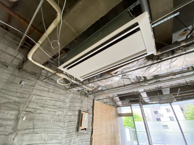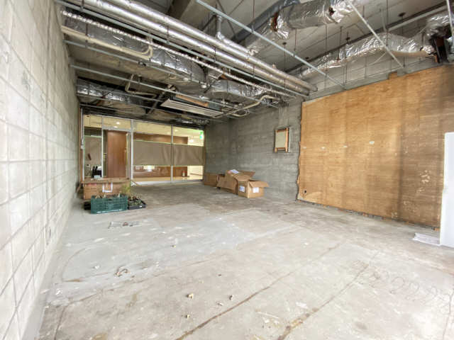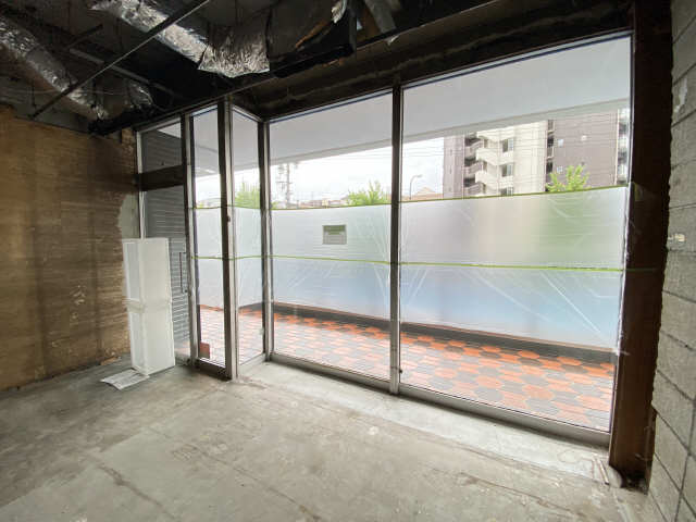 通り沿いのウインドウもガラス一面になっていますセキュリティ設備付で防犯面も安心!大型のエアコンも設備として設置済み!スケルトン内装なので内装の自由度が高い!