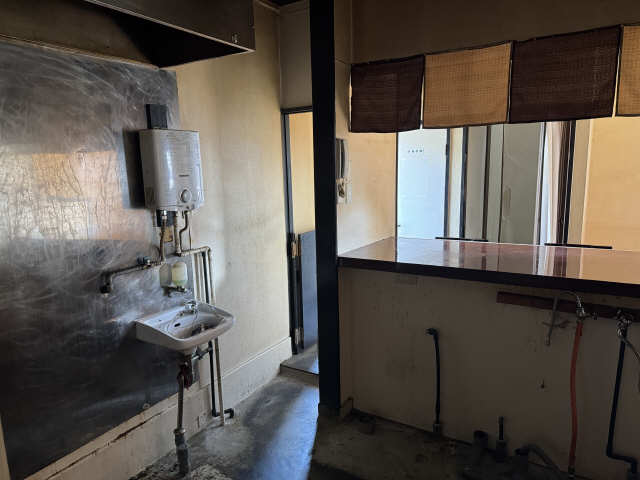幹線道路沿いですので、集客に期待できます。店舗内は自由にレイアウトできます。飲食店の内装が一部残っています。