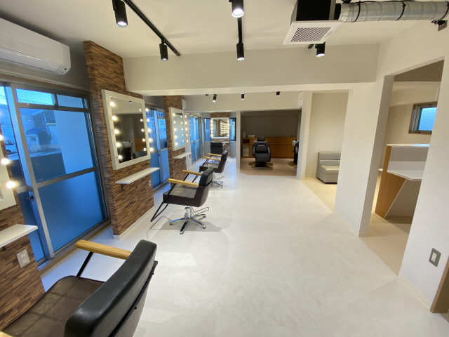 美容室の内装を大家様にてご用意しております。生活道路沿いで車通りの多い立地環境。駐車場は2台分賃料に込み。